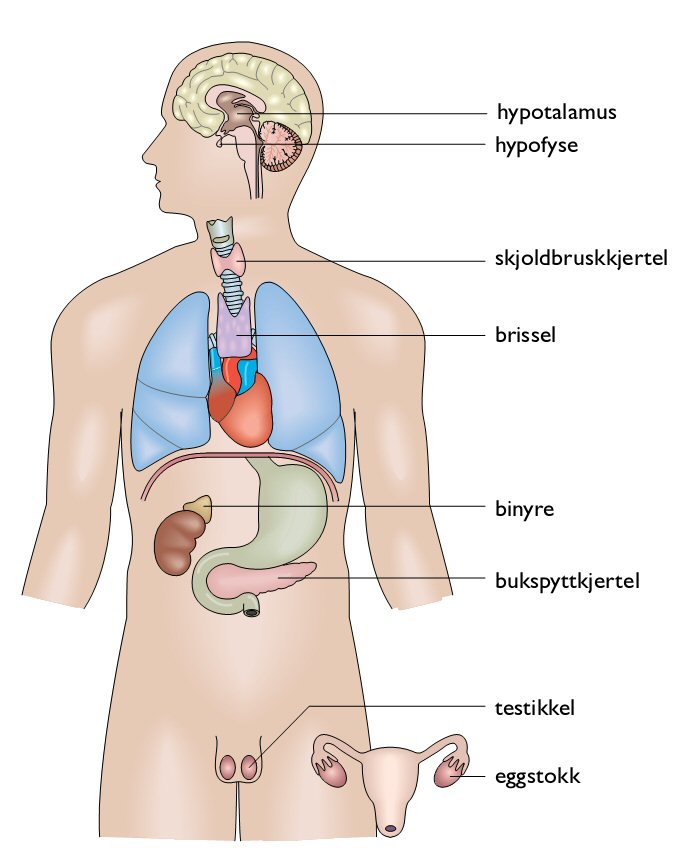 | Skjoldbruskkjertelen | Tyroksin | De fleste celler |