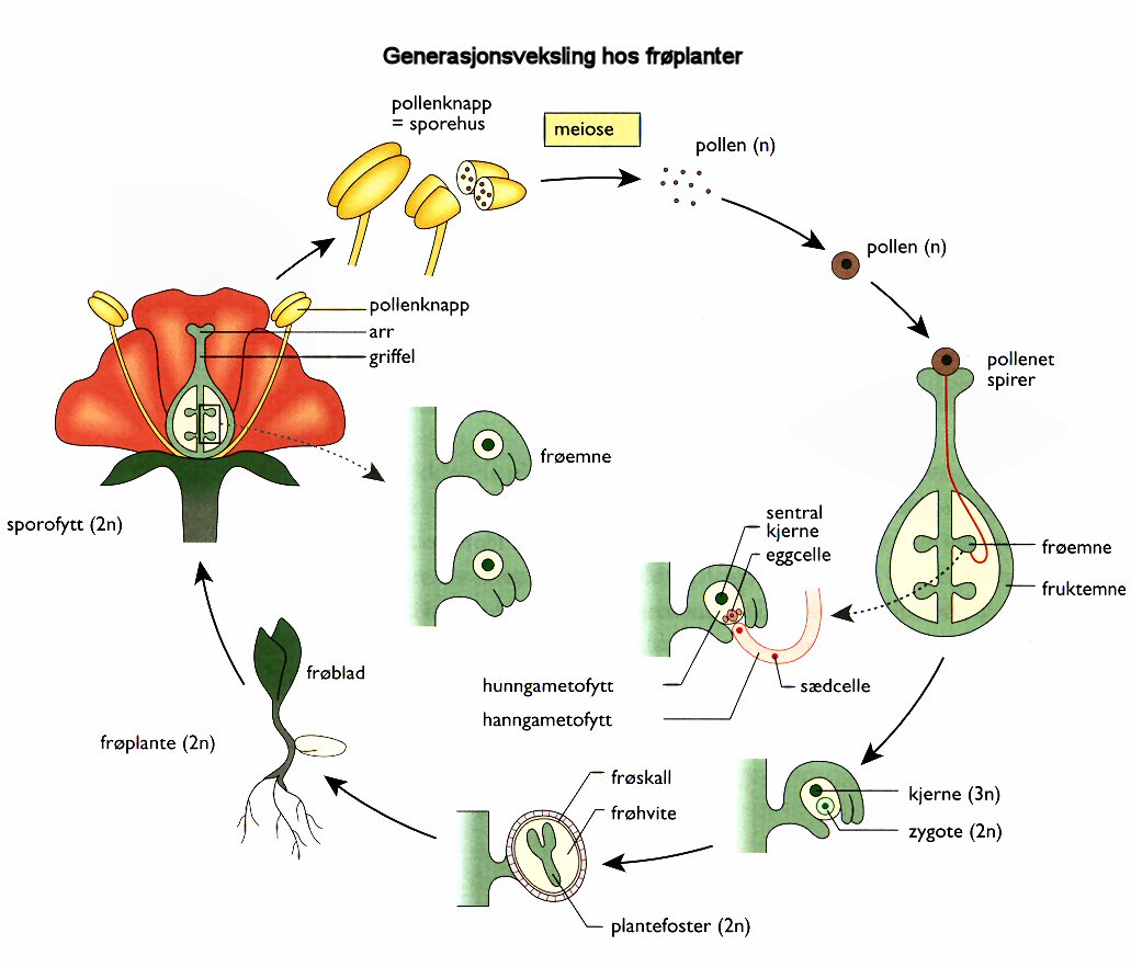 - pollenslangen vokser til frøemnet og inn i kimsekken