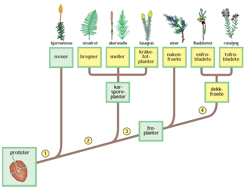 - Mulig utvikling: Protister i havet - protister i ferskvann - landplanter